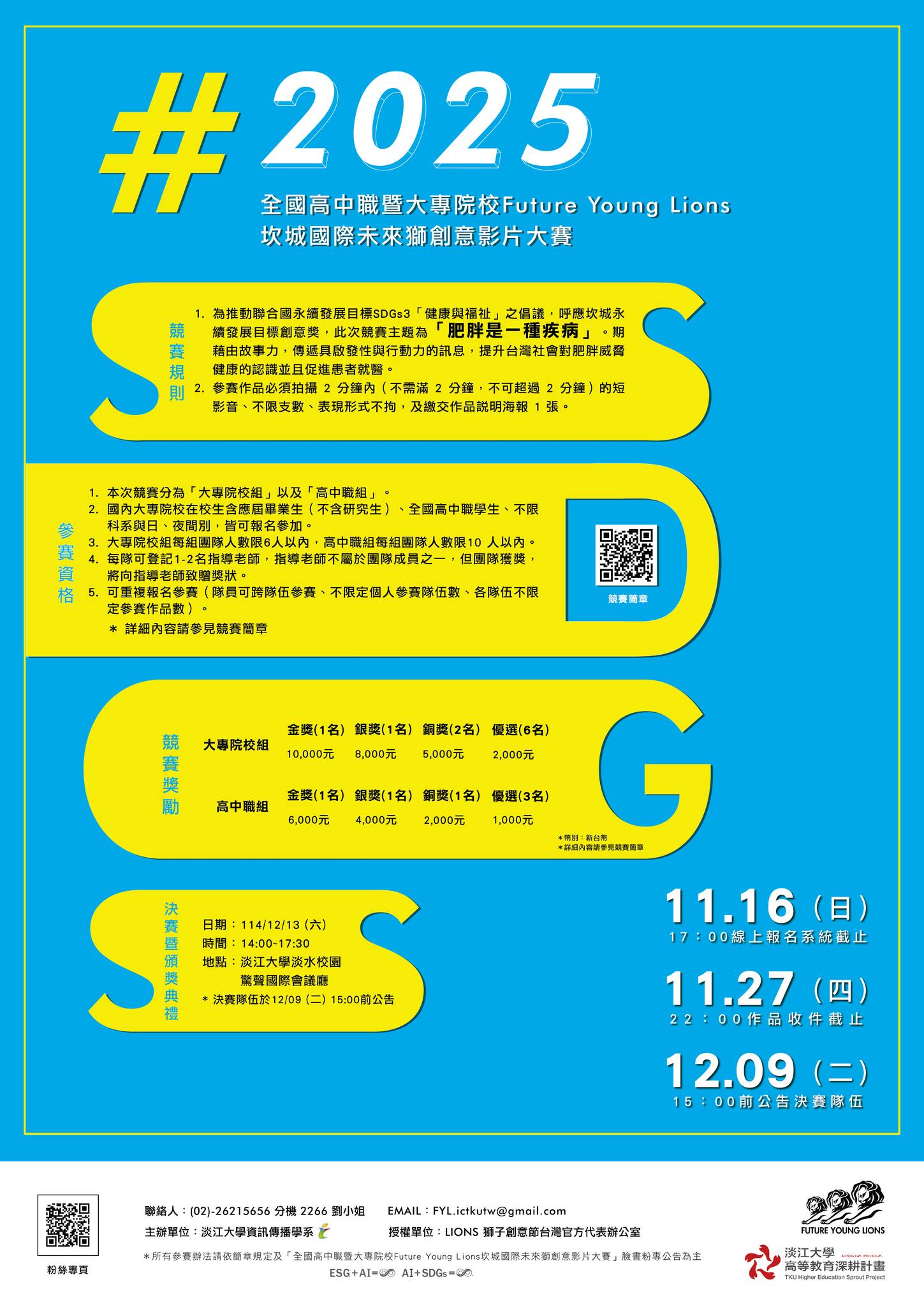 【2025全國高中職暨大專院校 Future Young Lions 坎城國際未來獅創意影片大賽】。