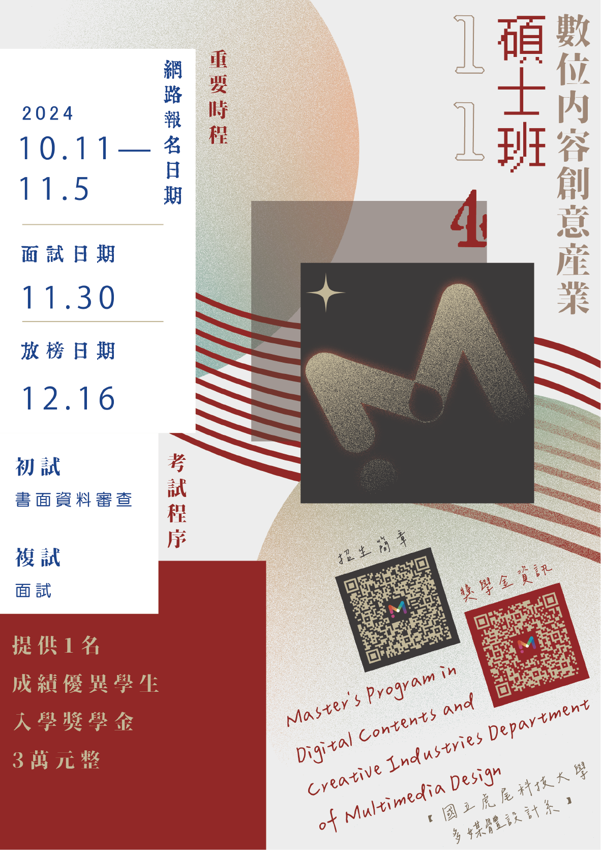 因應數位內容創意產業專業人才需求,培育數位內容創意產業領域所需之專業技術與研發人才。