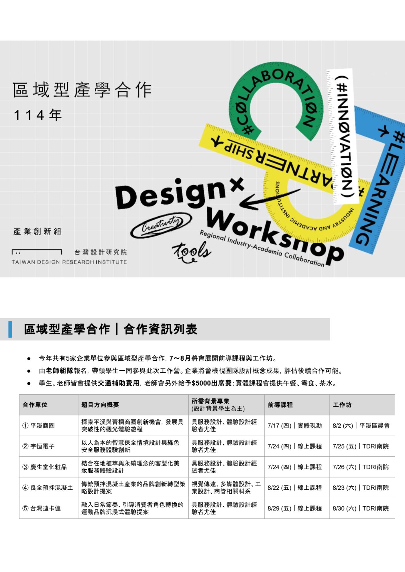 激發中南部企業創新思維,協助設計人才快速掌握地方產業現況與特性。